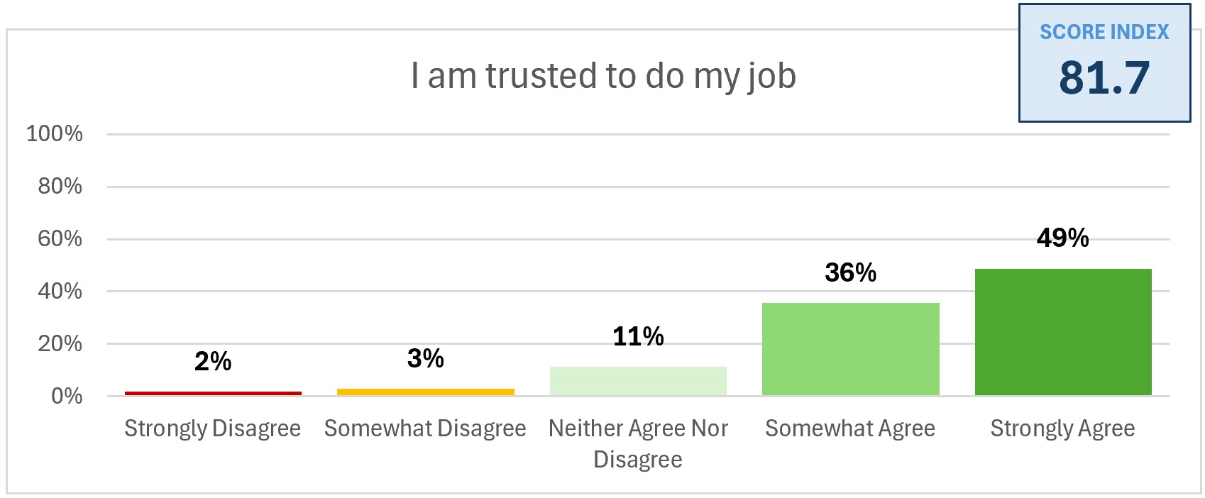 all responsesto the question (emphasis on all responses because this is important! Everyone's answer counts). Also, most people are familiar with understanding how a 70 or 80 relates to a score in the 50s. A score close to 75 or higher means mostly positive sentiment: